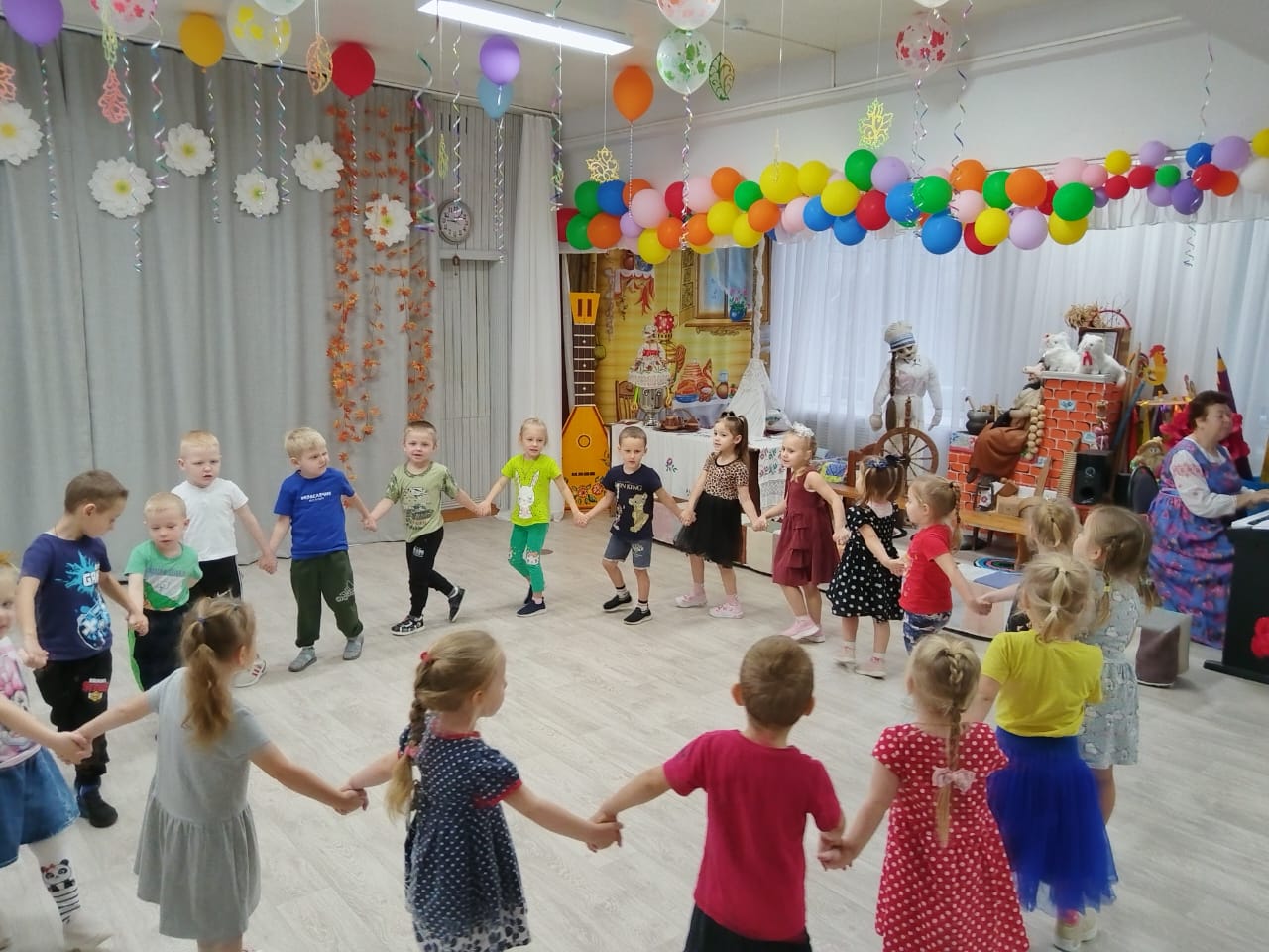 - Дети активно участвовали в русских народных играх «Самовар», «Матрёшка», «Малечина - калечина».
