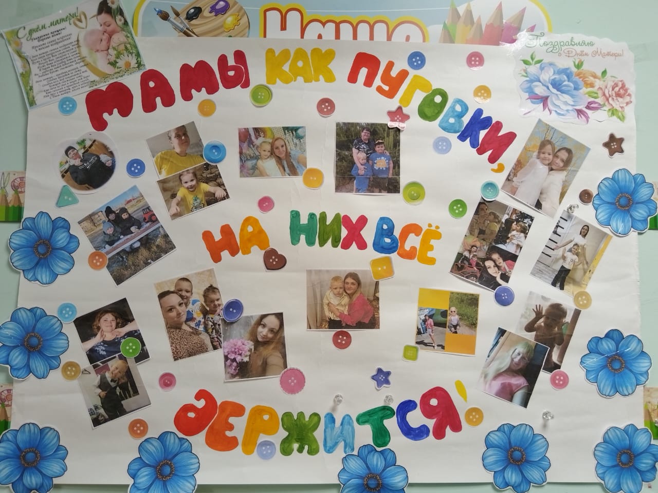 Педагоги совместно с воспитанниками подготовили тематическую выставку — стенгазету, посвящённую самым дорогим и любимым мамам.