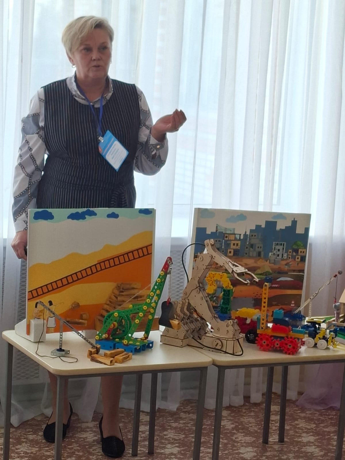 Особый интерес участников вызвала интерактивная выставка «От первых механизмов до современных инноваций», подготовленная нашим воспитателем Солдатенковой Мариной Викторовной, Марина Викторовна представила два авторских проекта: