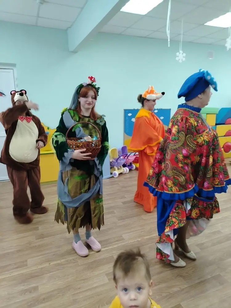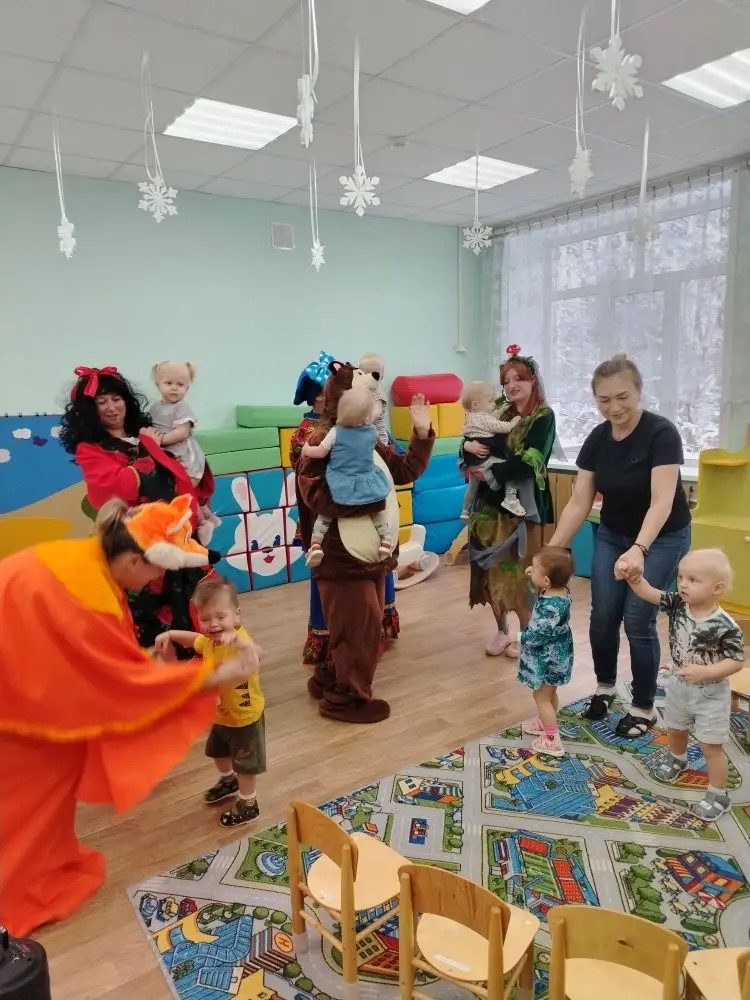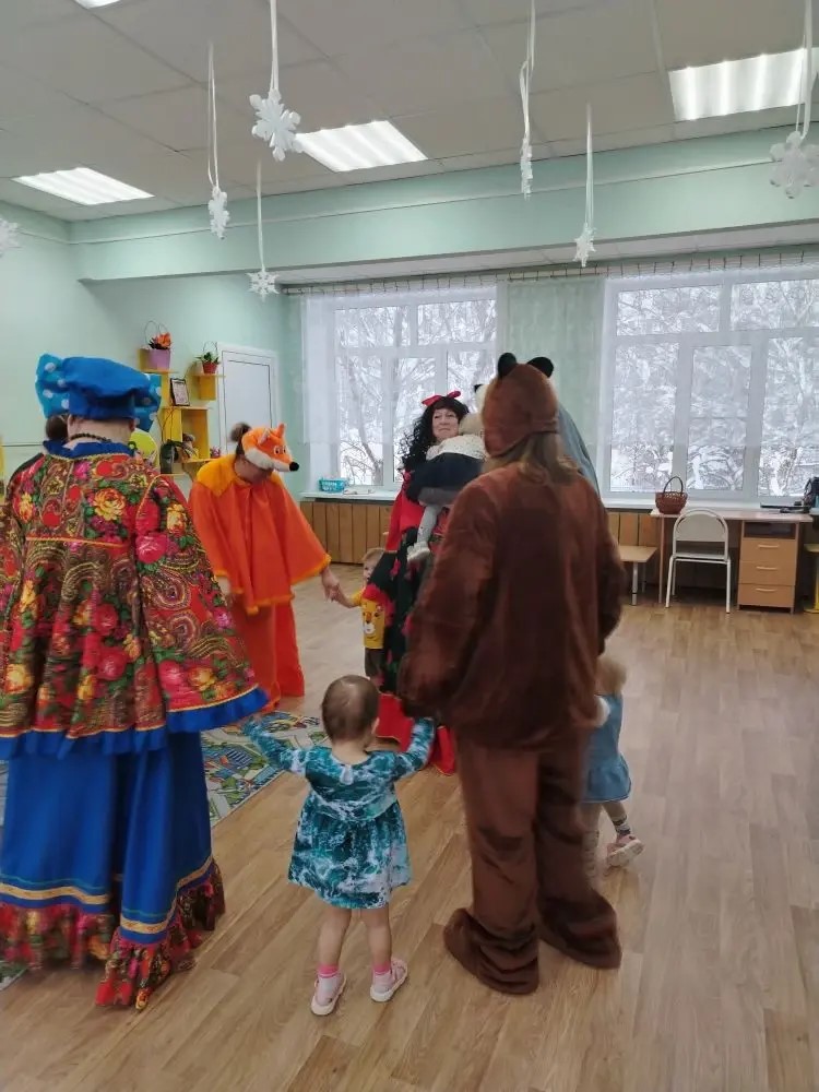 14 января к воспитанникам второй группы раннего возраста «Малыши‑крепыши» пришла Коляда. Ребят развлекали сказочные герои: Мишка, Лисичка ‑ сестричка, Кикимора и Хозяюшка.