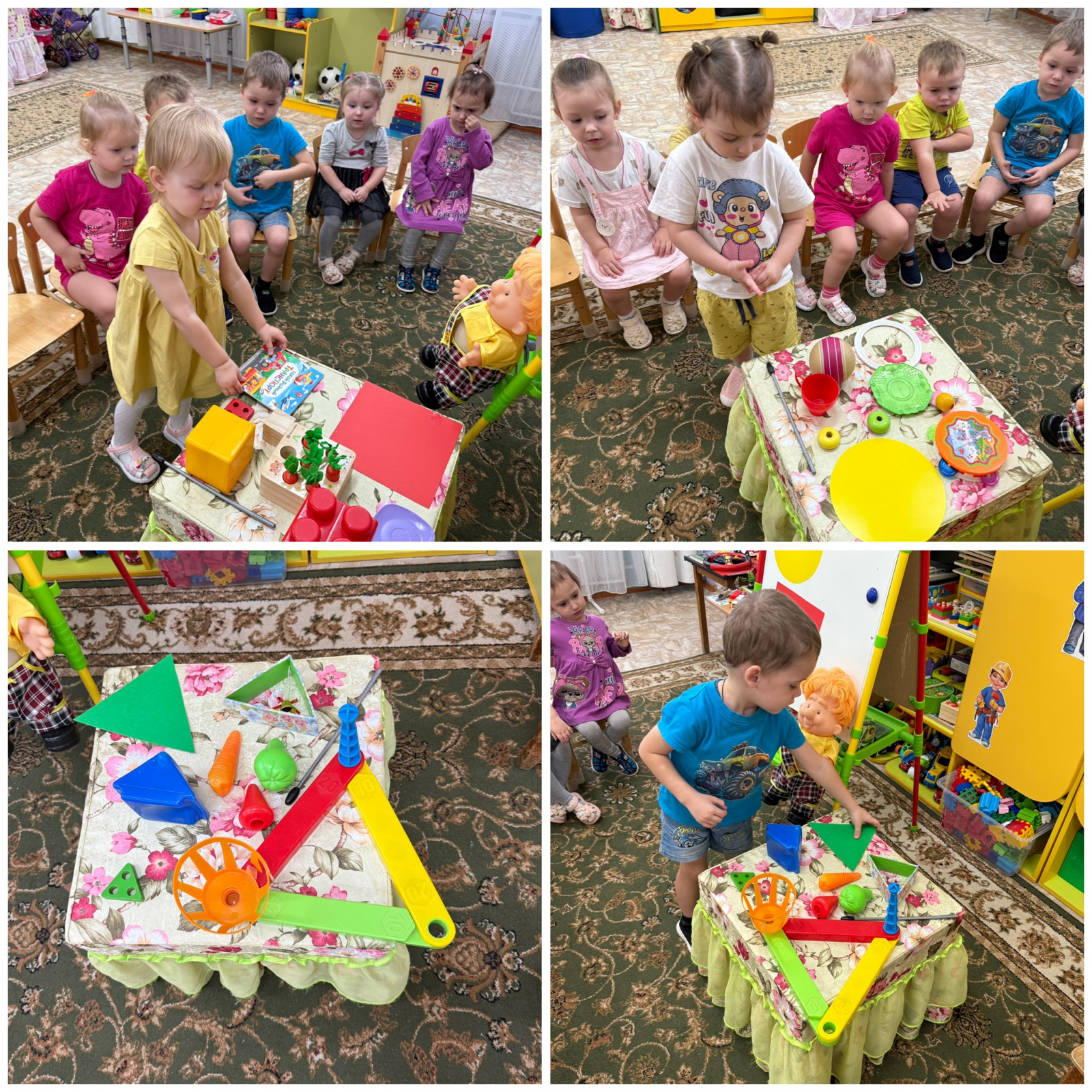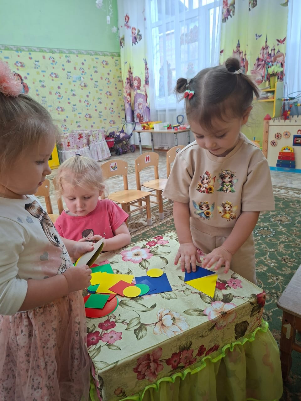 Ребята познакомились с основными геометрическими фигурами - квадрат, круг, треугольник. Закрепили умение обследовать форму, различать и называть фигуры.