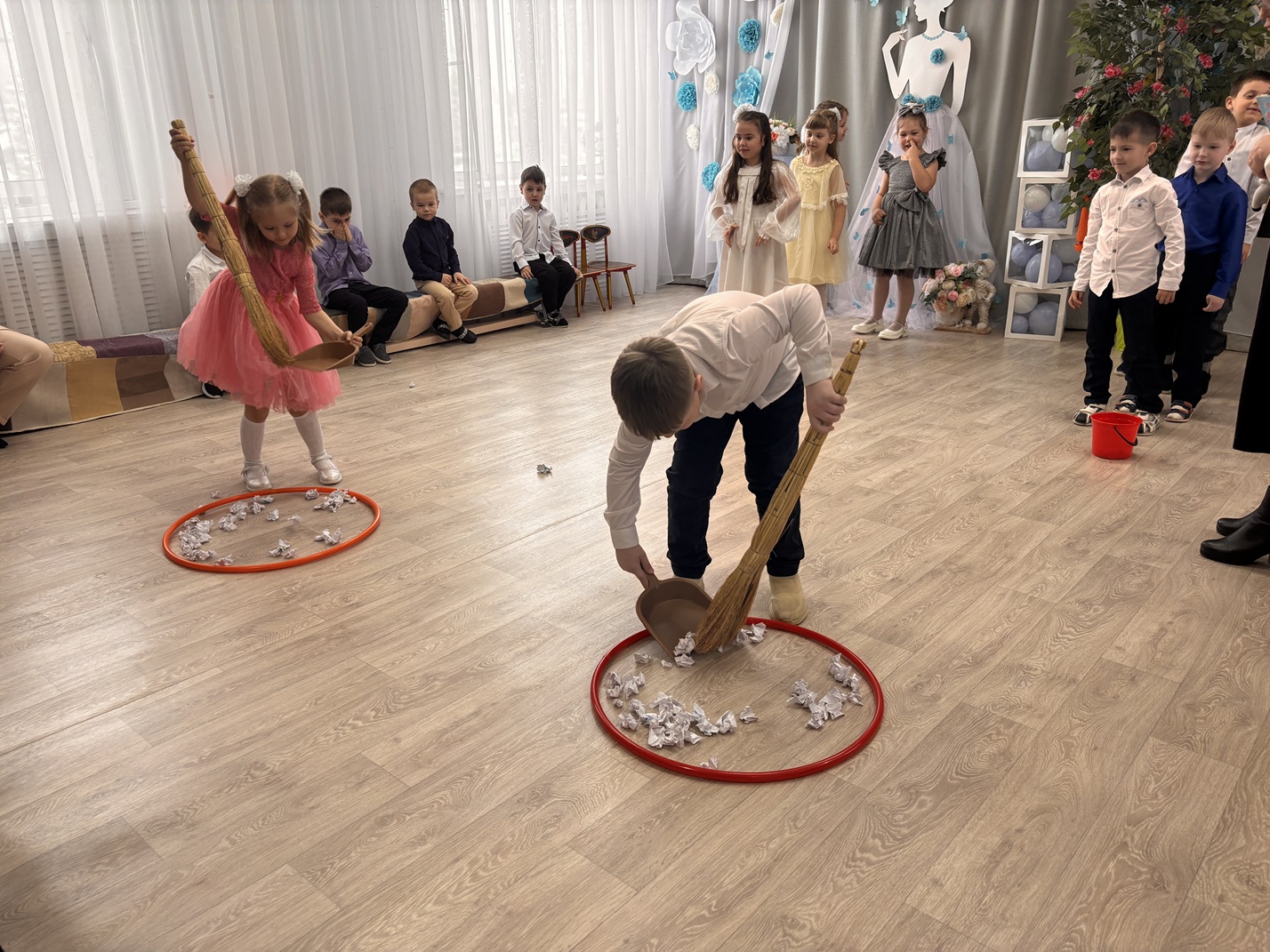 А ещё мы вместе с мамами и бабушками весело поиграли в увлекательные игры: «Собери продукты для пирога» и «Генеральная уборка».
