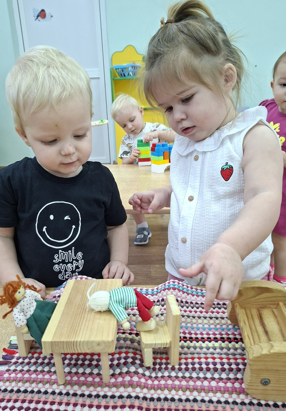 Малыши с радость говорили о папе, показывали на фото, конструировали «Гараж для папы», чинили машинку.