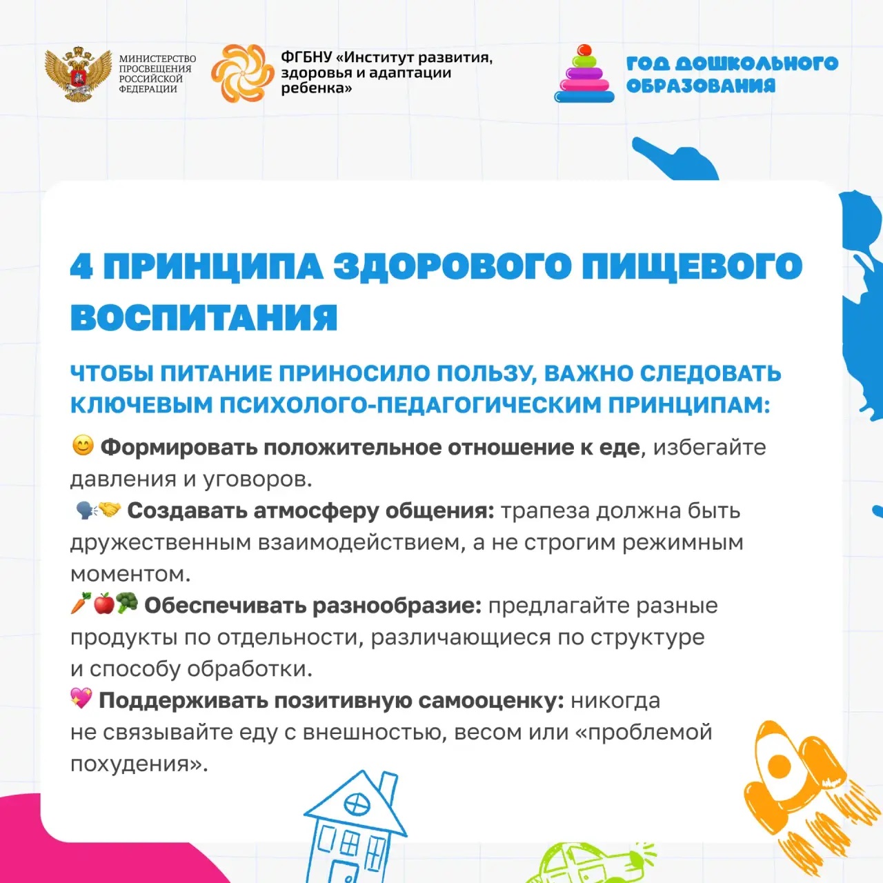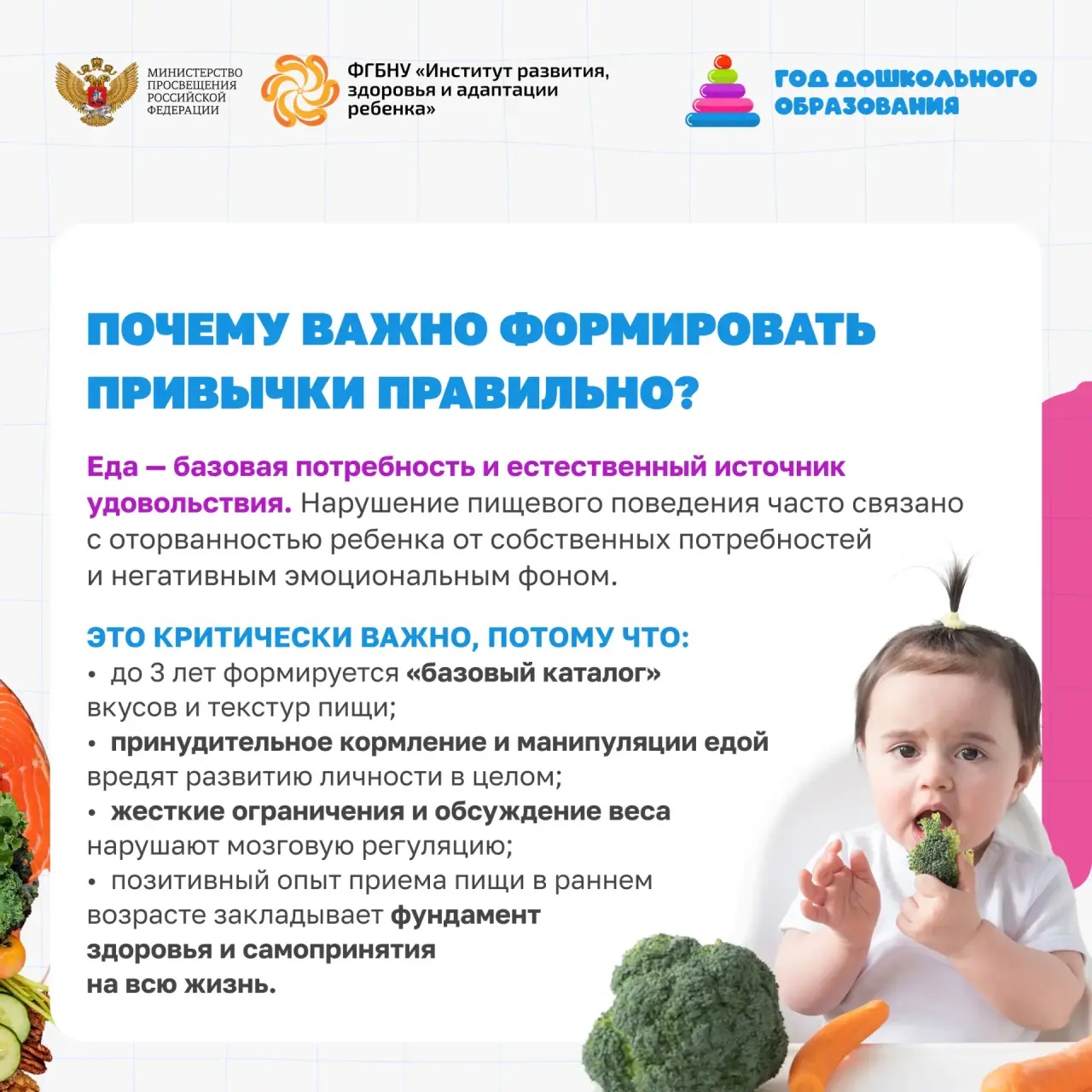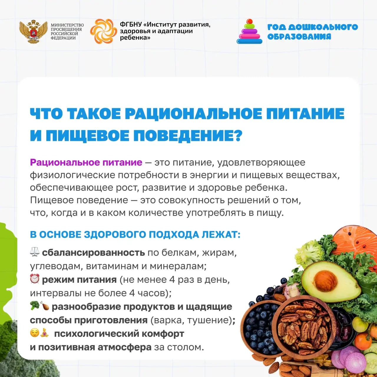В наших карточках мы разбираем, что такое рациональное питание и пищевое поведение, почему первые годы так важны для формирования вкусовых предпочтений и как внедрить здоровые привычки без стресса и конфликтов.