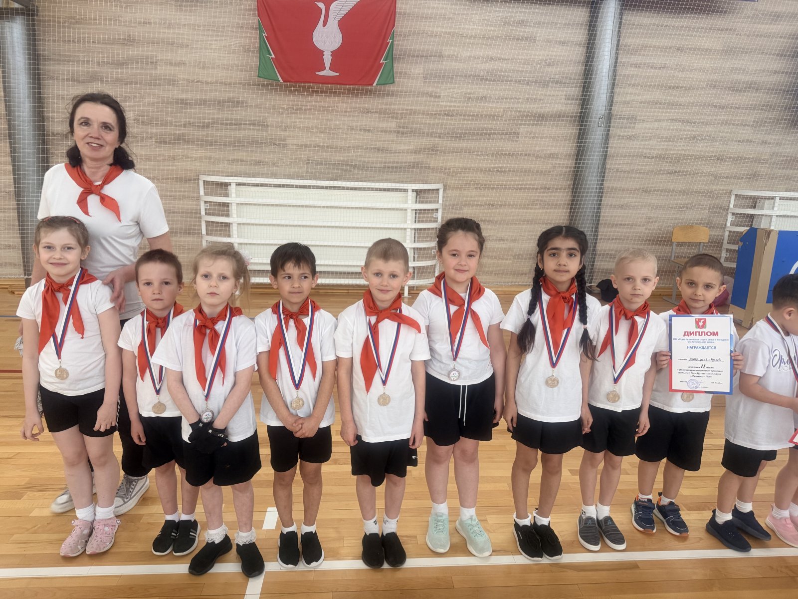 Наши маленькие чемпионы из подготовительной группы «Бабочки» (команда «Дружба») достойно представили наш детский сад среди воспитанников 9 детсадов Гусь‑Хрустального муниципального округа!